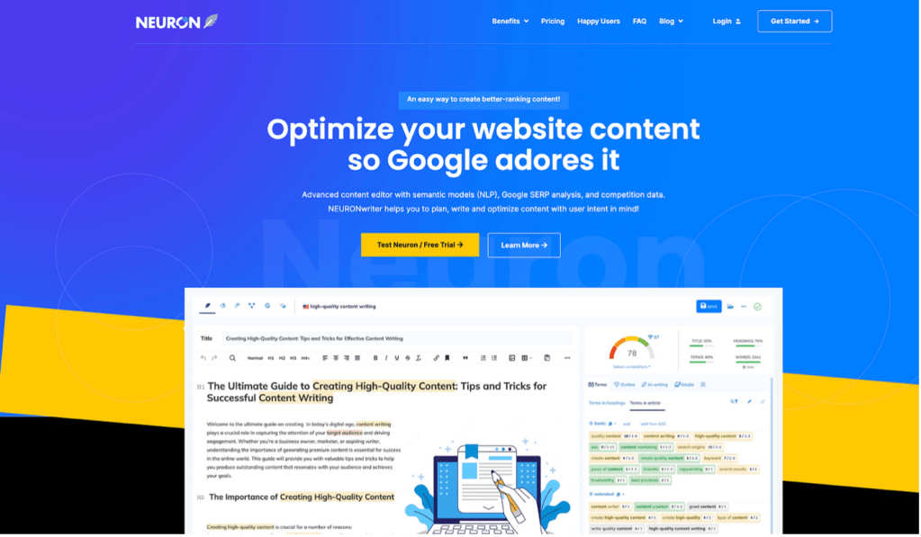 Now, let’s dive into NeuronWriter. This ingenious tool eliminates the guesswork from creating SEO-friendly content that secures a high rank on Google.